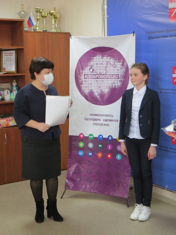 18 марта состоялась встреча победителей муниципального этапа областного волонтёрского конкурса "Марафон добрых дел-2021" с заместителем главы администрации Шиловского муниципального района Людмилой Николаевной Агафоновой и начальником управления образования Надеждой Анатольевной Чиенёвой, которые поздравили участников конкурса, пожелали успешной реализации проектов. Добровольцы были награждены грамотами администрации и памятными подарками.