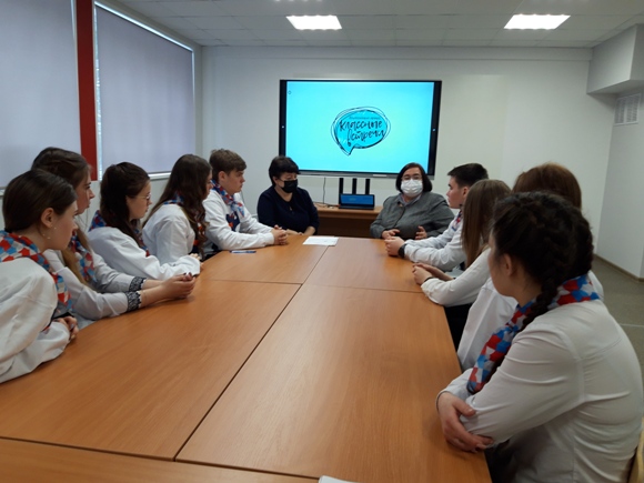 Беседа о Крыме плавно перешла в разговор о Международном лагере «Артек», о пионерских лагерях, о жизни активистов в разные времена. Людмила Николаевна поделилась своими воспоминаниями о пионерской жизни, ребята в свою очередь рассказали о деятельности в РДШ.