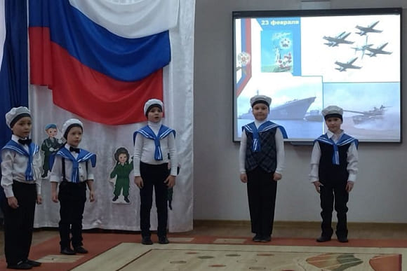 Воспитанники детских садов готовятся ко Дню защитника Отечества. Дети провели армейскую зарядку, выучили стихи и песни, приготовили оригинальные подарки для своих пап, дедушек и братьев.