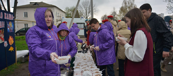 Играл духовой оркестр, выступали юные вокалисты, работала полевая кухня.