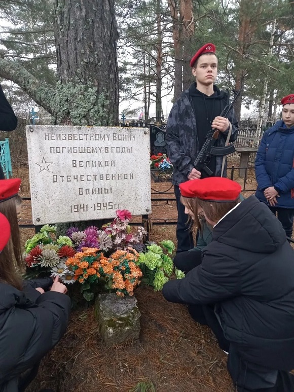 Учащиеся и юнармейцы провели памятные митинги. Они возложили гирлянды и цветы к Вечному огню, обелискам, братской могиле и местам захоронений неизвестных солдат. Минута молчания стала символом благодарности всем безымянным бойцам, отдавшим свои жизни во имя мира и счастья будущих поколений.