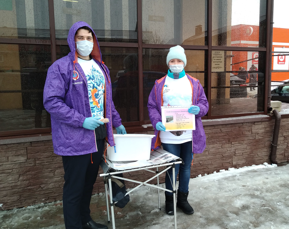 На улицах «Волонтёры Победы» рассказывали жителям о подвиге людей, а также передавали 125 граммов чёрного хлеба как символ памяти. Также волонтёры раздавали информационные листовки о прорыве блокады.