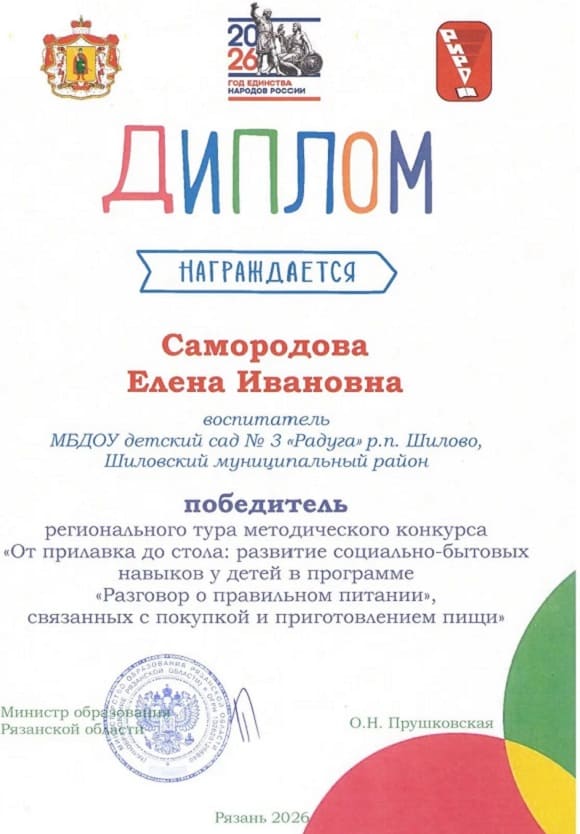 По результатам рейтинга победителем конкурса стала Самородова Елена Ивановна, воспитатель детского сада №3 «Радуга» р. п. Шилово
