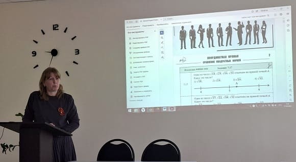 О курсах повышения квалификации для учителей математики рассказала Клочкова Ю.Н., руководитель районного методического объединения, учитель математики Занино-Починковской СОШ. Также она познакомила педагогов с разбором новых заданий открытого банка заданий ОГЭ по математике ФИПИ.